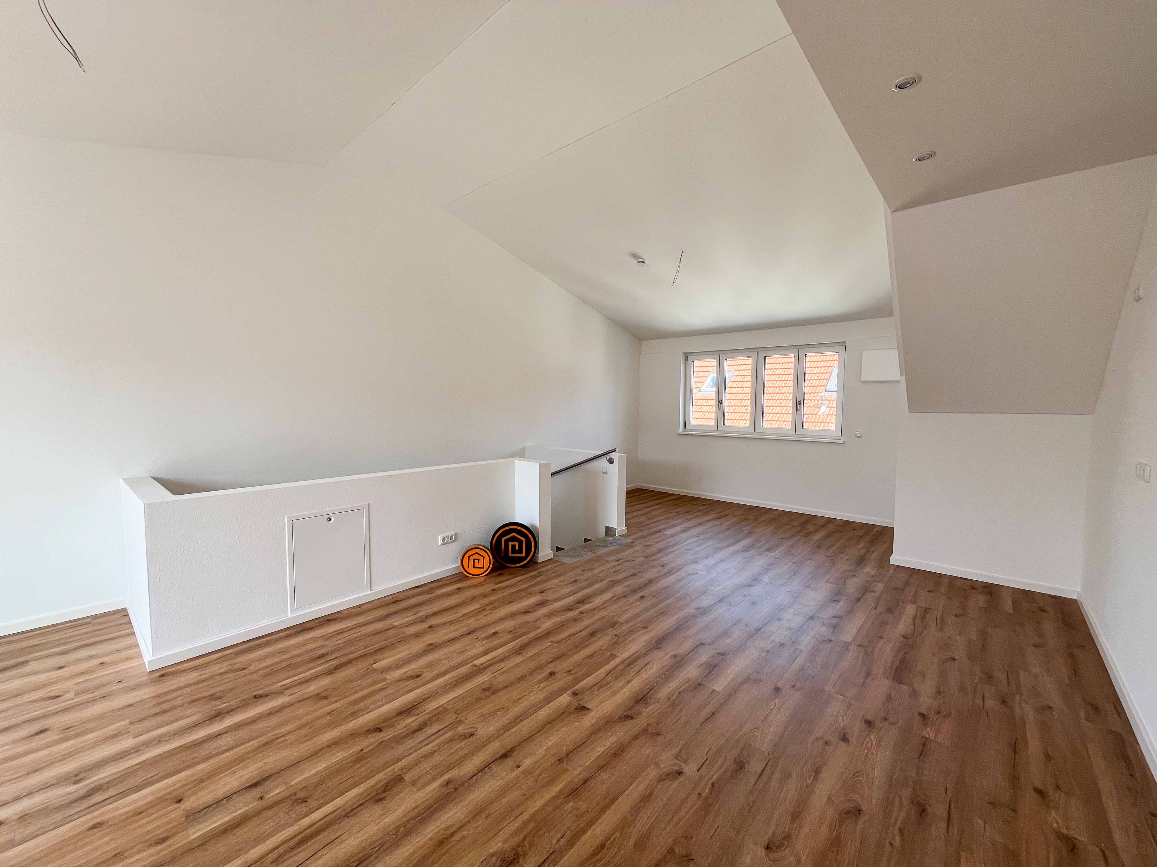 Bei dem Innenausbau wurde viel Wert auf Flexibilität gelegt: Küchenanschlüsse in Erd- und Dachgeschoss, moderne Bäder auf zwei Ebenen und durchdachte Grundrisse ermöglichen verschiedene Wohnkonzepte.