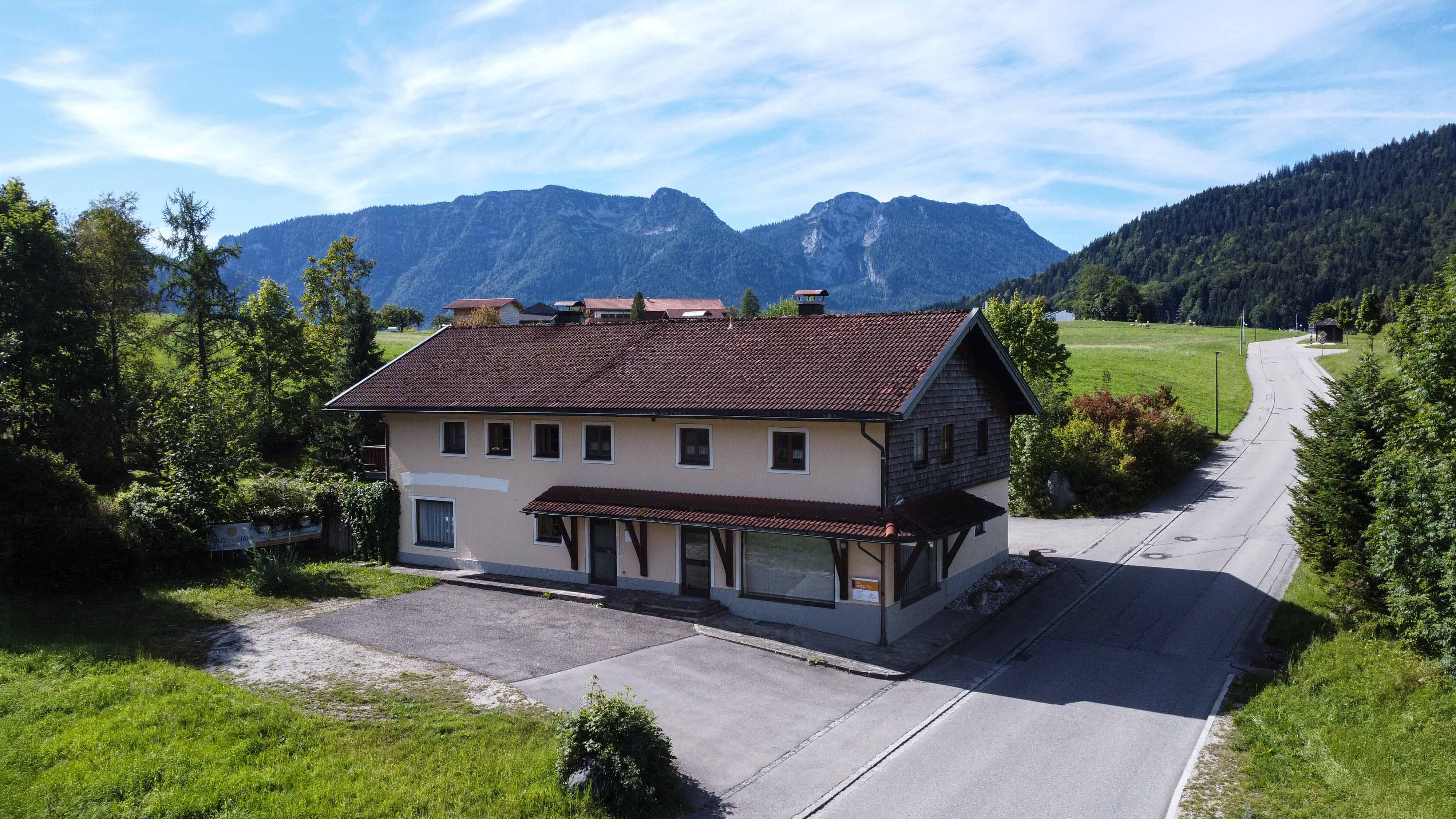 Diese vielseitige und großzügige Immobilie an der Alpenstraße vereint auf ideale Weise Wohn- und Gewerbenutzung. Auf einem weitläufigen Areal von ca. 5.683 m² erstreckt sich ein gepflegtes Grundstück mit liebevoll gestalteter Gartenanlage sowie einer angrenzenden Wiesenfläche, wovon ca. 1.200 m² als naturnahe Ausgleichsfläche dienen. Dank der flexiblen Nutzungsmöglichkeiten eignet sich dieses Anwesen ideal für eine Kombination aus Wohnen und Arbeiten oder eine gewerbliche Nutzung mit großzügigem Platzangebot.