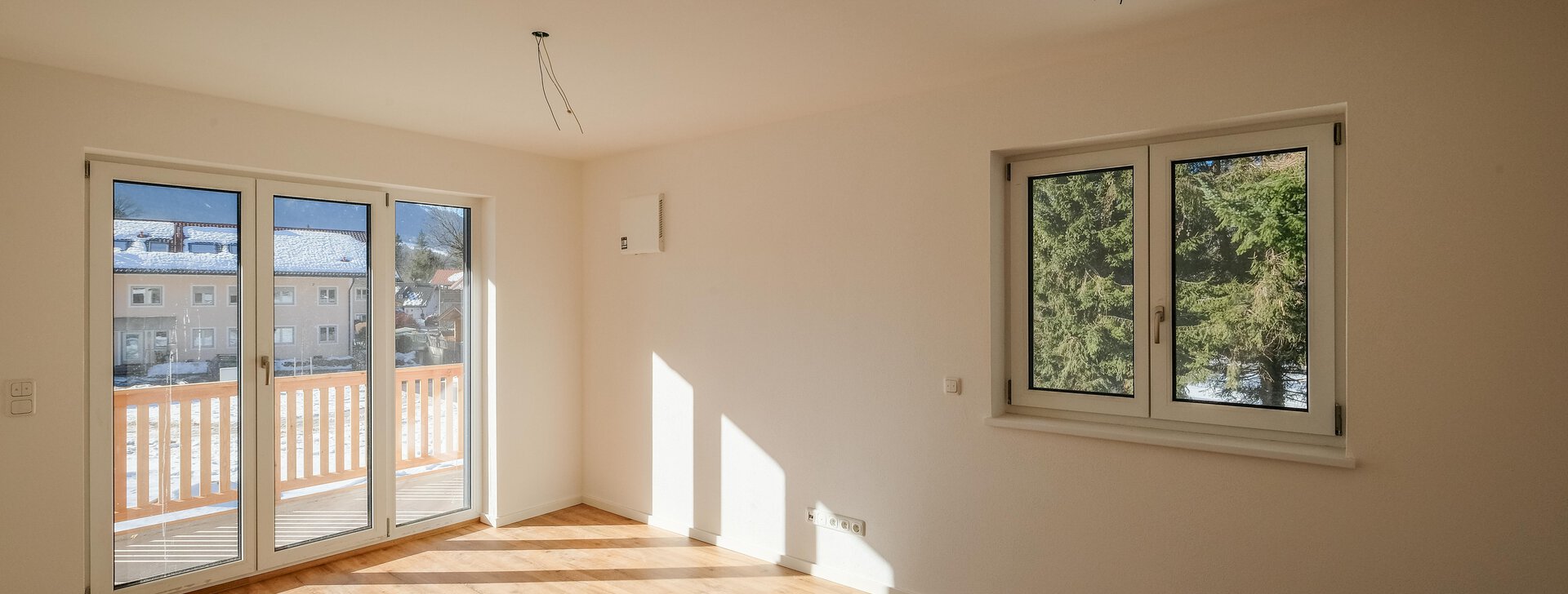 Die zwei Balkone sind in Südost- und Südwest-Ausrichtung auf einer Etage verteilt, sodass Sie zu jeder Tageszeit Sonne und den herrlichen Blick in die Umgebung genießen können.