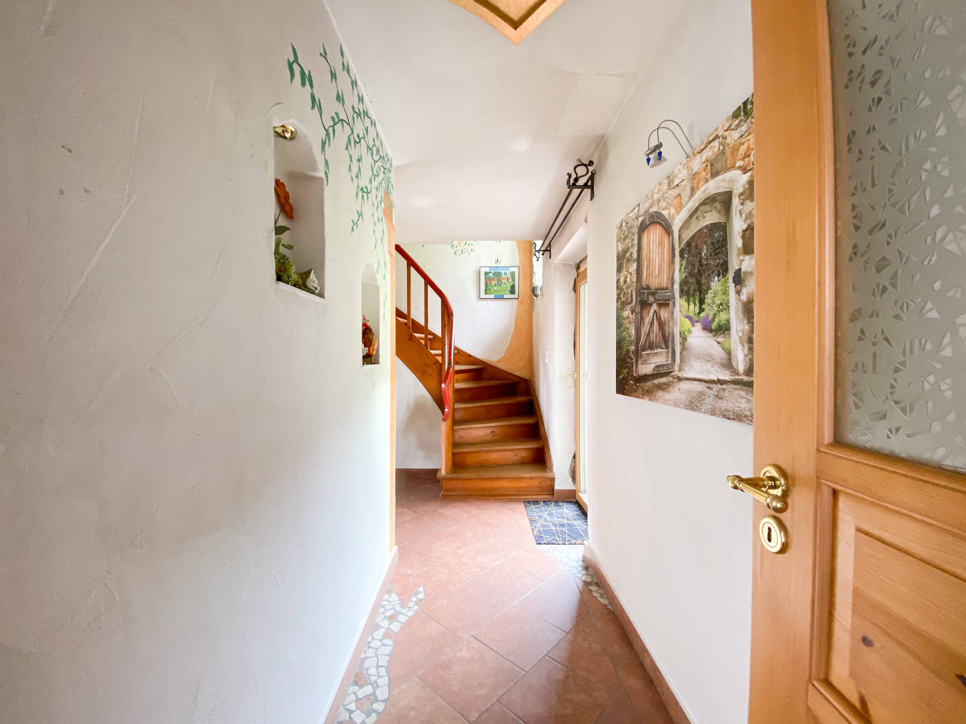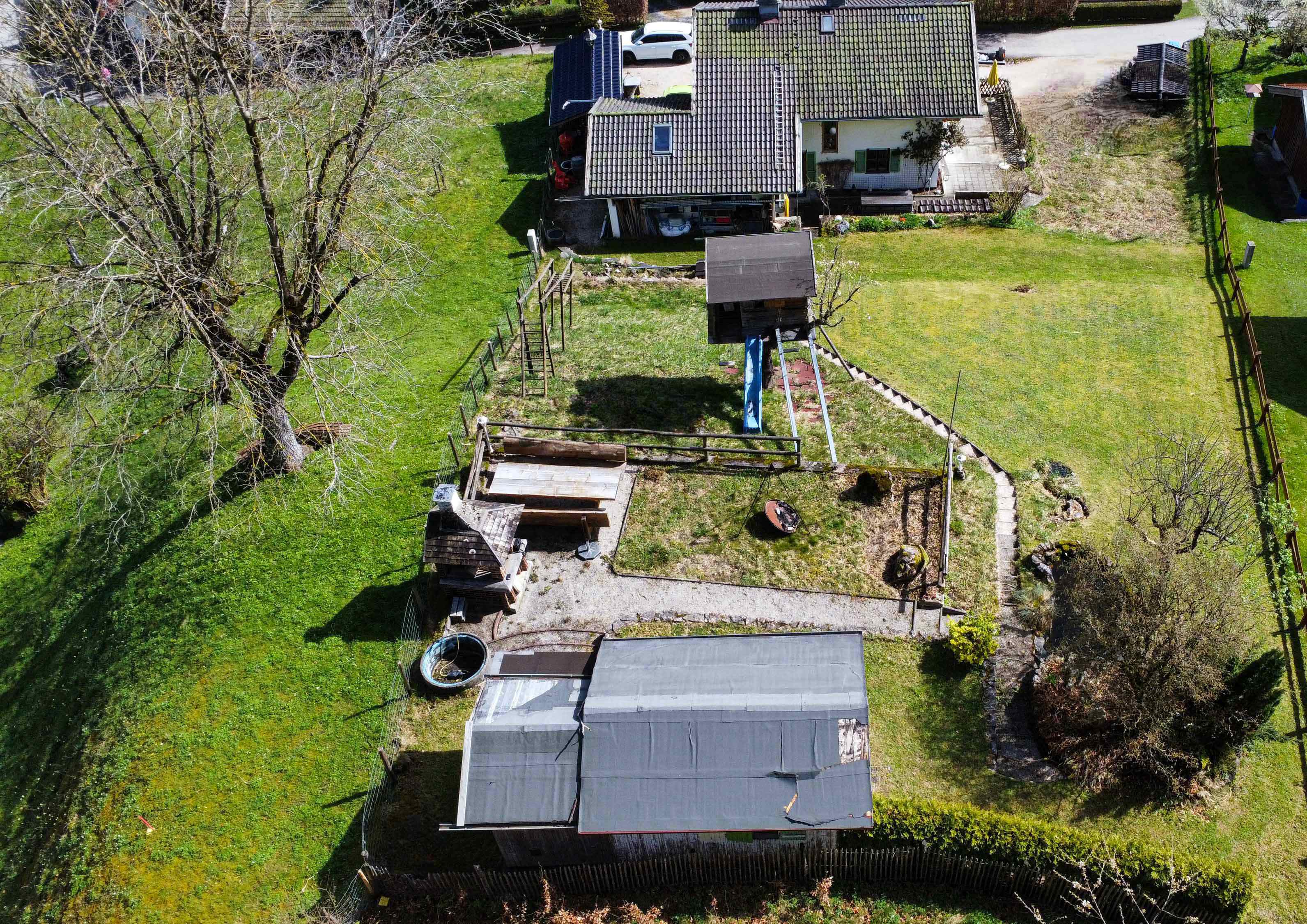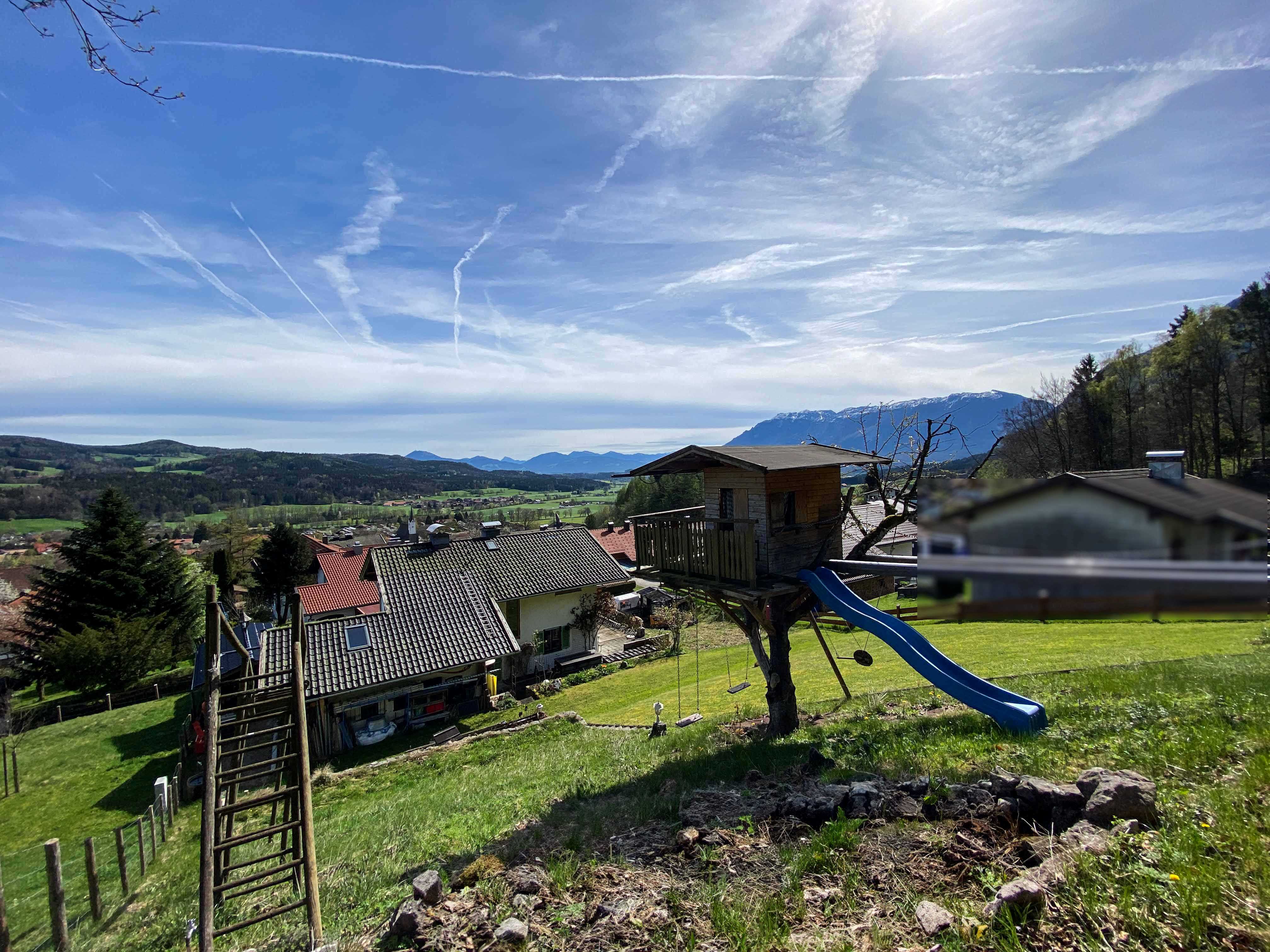 Der großzügige Garten, der sich in Hanglage befindet, ist ein wahres Paradies und bietet zahlreiche Möglichkeiten zur Entspannung und Freizeitgestaltung. Ein Baumhaus, ein Grillkamin, eine Holzhütte mit Sauna sowie schöne Steinmauern verleihen dem Garten seinen besonderen Charme. Von Garten und Balkon aus genießen Sie einen atemberaubenden Blick auf die heimischen Berge.