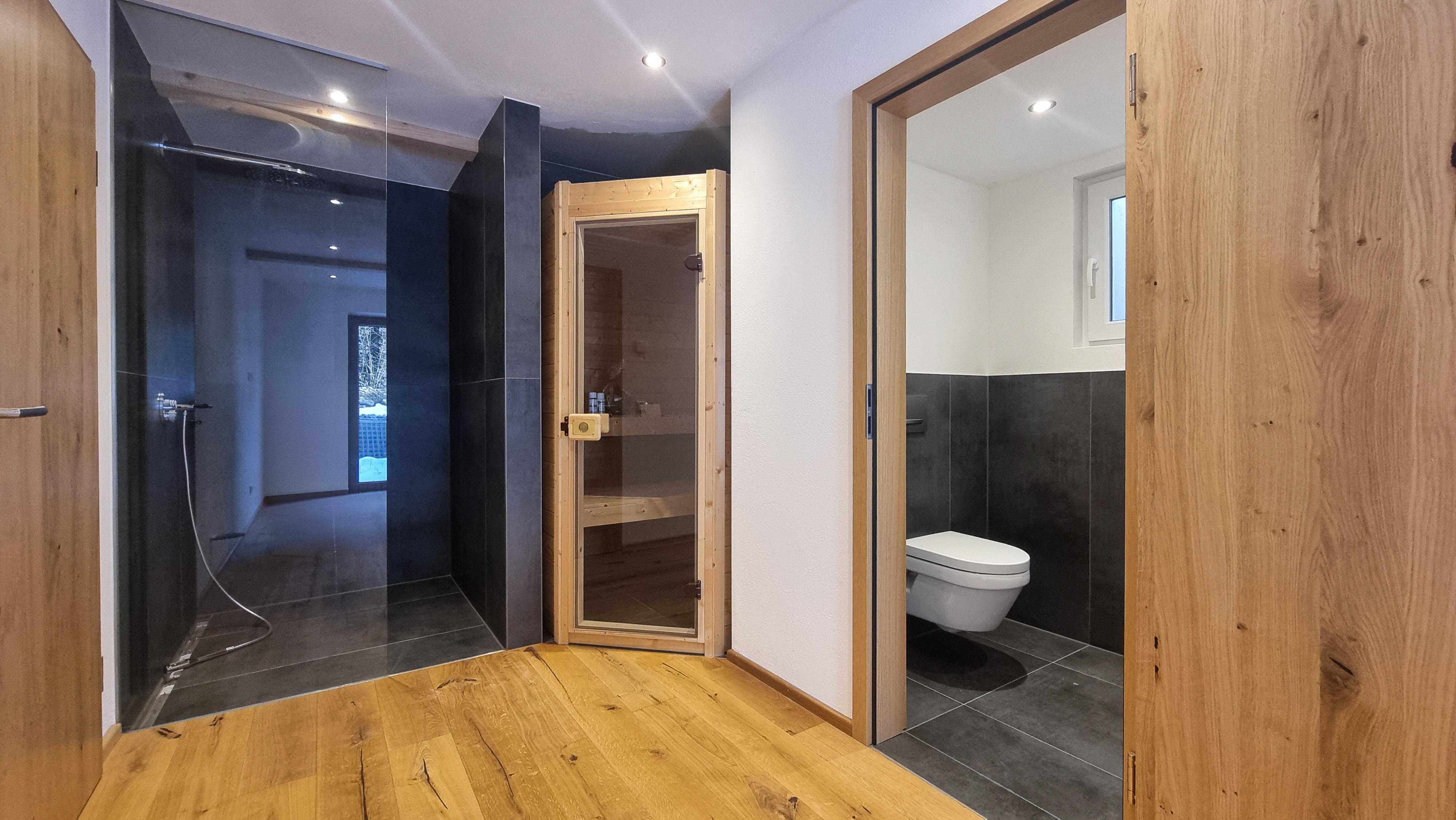 Bereits beim Betreten des Hauses wird die besondere Wertigkeit spürbar. Hochwertiges Echtholzparkett, elegante italienische Fliesen sowie robuste Korkböden in den Kinderzimmern schaffen ein harmonisches und zugleich langlebiges Wohnambiente. Die Fußbodenheizung sorgt in allen Bereichen für angenehme Wärme, während die Silikat-Wandbeschichtung aktiv zur Feuchtigkeitsregulierung und zu einem gesunden Raumklima beiträgt.