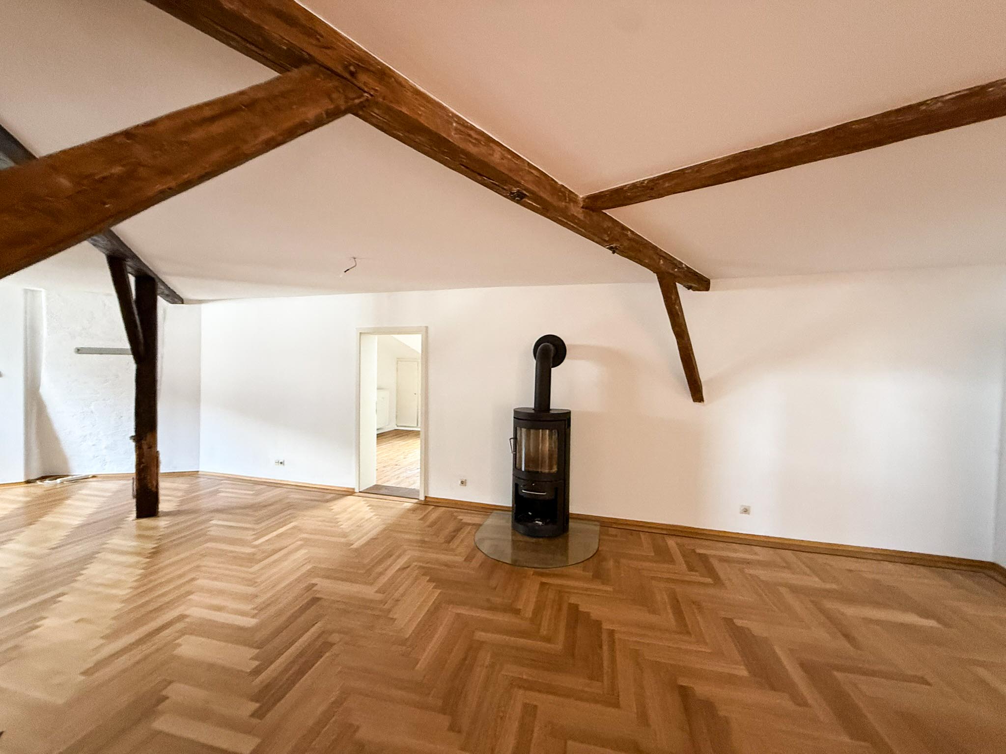 Die fünf Zimmer sind flexibel nutzbar und bieten ausreichend Platz für Wohnen, Arbeiten oder eine Kombination aus beidem. Der vorhandene Kaminofen sorgt für eine angenehme und besondere Wohnatmosphäre.